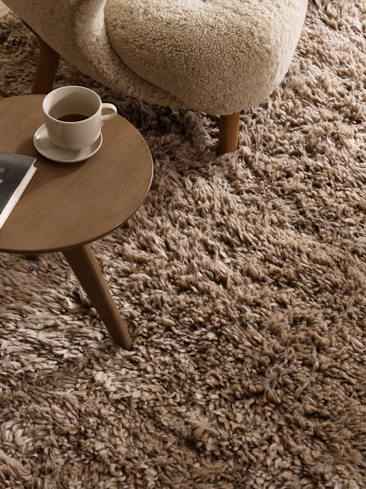 Siden ull er et naturmateriale, er ullteppet lettstelt og smussavvisende. Den enkleste måten å holde ullteppet fin på er å støvsuge den regelmessig. Skulle du få flekker, kan du bruke lunkent vann og eventuelt noen dråper oppvaskmiddel