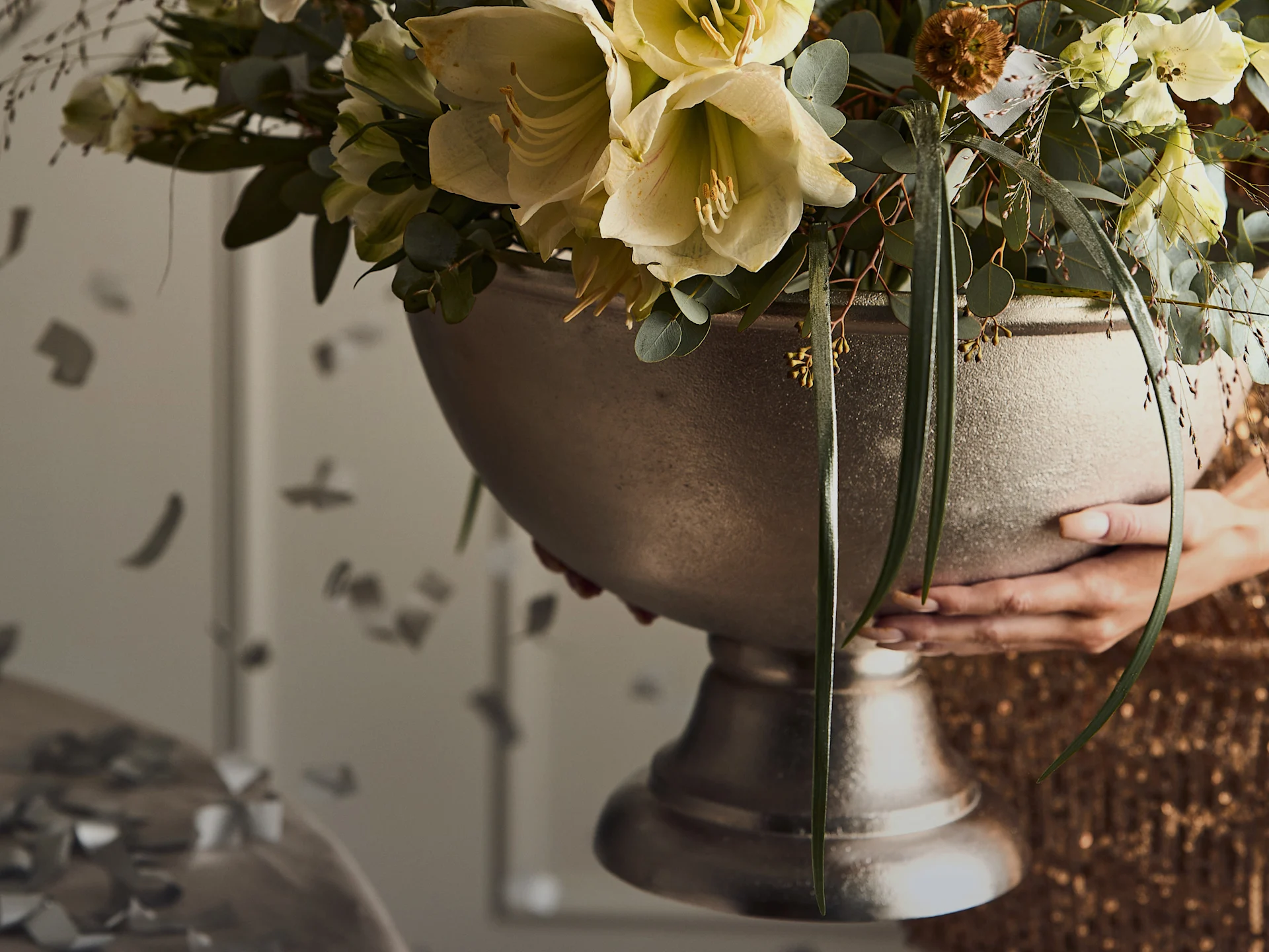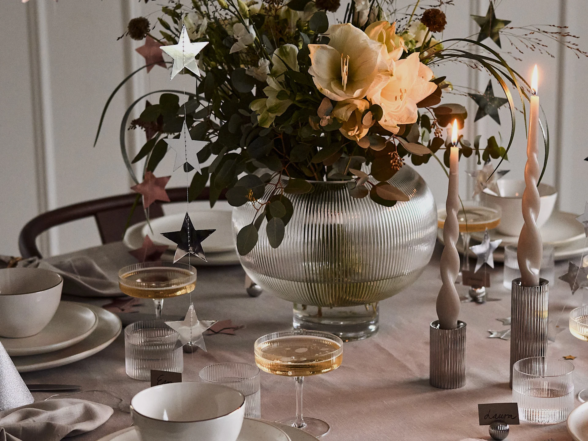 Et pyntet bord skaper en vakker ramme for festen, og bidrar til stemningen. Nyttårsaften er ofte litt mer uformell enn andre festdager, noe som gjerne kan understrekes med bordpynten. I tillegg til lysestaker, telysholdere, lyslykter og lysfat, kan du gjerne pynte bordet med noe uventet, som for eksempel trefigurer, kunstglass eller andre skulpturer! Dette gjør borddekkingen din unik, og er også en utmerket samtalestarter.