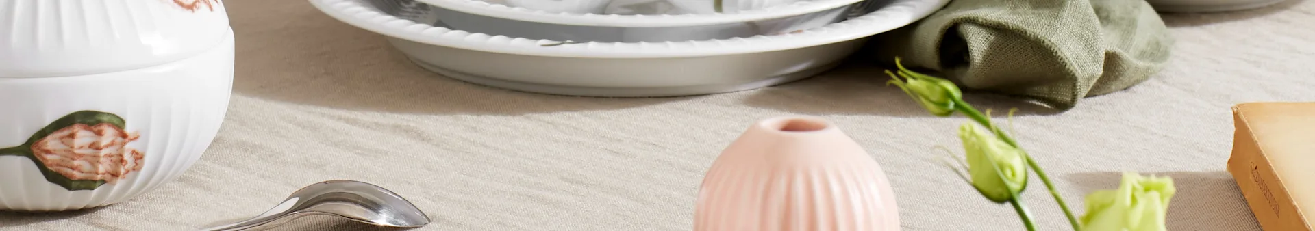 Match linduken med et servise i stentøy, som for eksempel Nordic Sea fra Broste Copenhagen. Produkter med en røffere og mer rustikk stil er også et perfekt valg for å skape kontraster i en mer klassisk borddekking. Hvorfor ikke plassere porselenstallerkenen på en flettet spisebrikke.