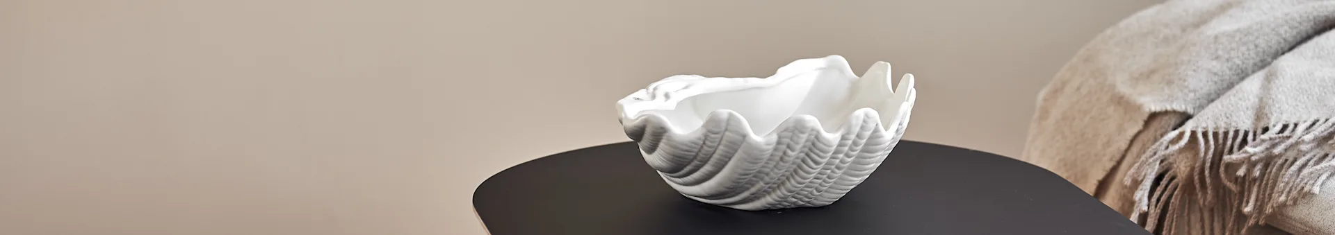 Her hos Nordic Nest kan du finne et stort utvalg interiør og dekorasjoner, deriblant pynteskåler i en rekke ulike materialer som tre, glass, metall eller betong fra kjente og populære merkevarer som ferm LIVING, HAY og Iittala.