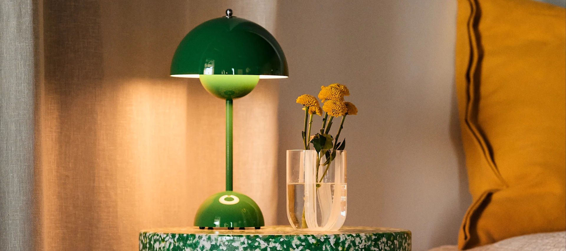 Lysdesignen hans gjenspeiler denne filosofien tydelig. Lamper som Flowerpot og Panthella kombinerer myke, organiske former med leken fargebruk og balanserer skulpturelt nærvær med hverdagsfunksjon. Disse designene har blitt varige klassikere som fortsatt oppleves friske og moderne, flere tiår etter at de ble skapt.