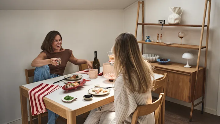 "Tenk deg at du er på en restaurant når du dekker bordet, inkluder mange skåler og små tallerkener. Borddekkingen blir umiddelbart litt morsommere, akkurat som restauranter i dag prøver å skape en følelse av hjem," forklarer Beatrice. "Vår nye Kai-fat, for eksempel, som er formet som en fisk, tilfører karakter til hele bordet med sine små rødkålben, og gir et ekstra lag med moro til bordet."