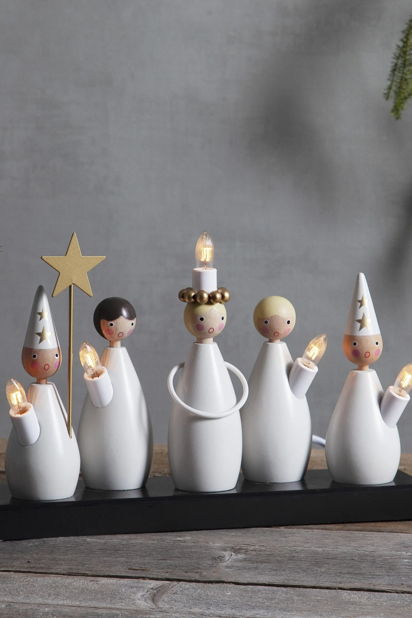 Lekne adventslysestaker gir julepynten et sjarmerende og unikt preg og gjør hver adventssøndag til noe helt spesielt. Lucia-koret fra Star Trading er spesielt fortryllende med sitt detaljerte design, som kombinerer tradisjonelle elementer med moderne design. Slike lysestaker skaper ikke bare en koselig atmosfære, men forteller også historier - enten det er om skandinaviske juletradisjoner eller individuelle tolkninger av adventstiden.