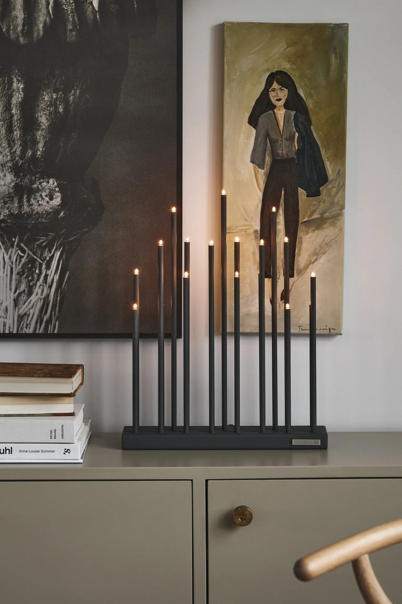 Sett adventsstaken i vinduet så den synes både innenfra og utenfra, eller la den stå på spisebordet, skjenken eller i gangen sammen med annet julepynt. Kombiner den med granbar, noen fine julekuler eller en liten lyslykt, så får du en hel julegruppe i stedet for bare én dekorasjon.
