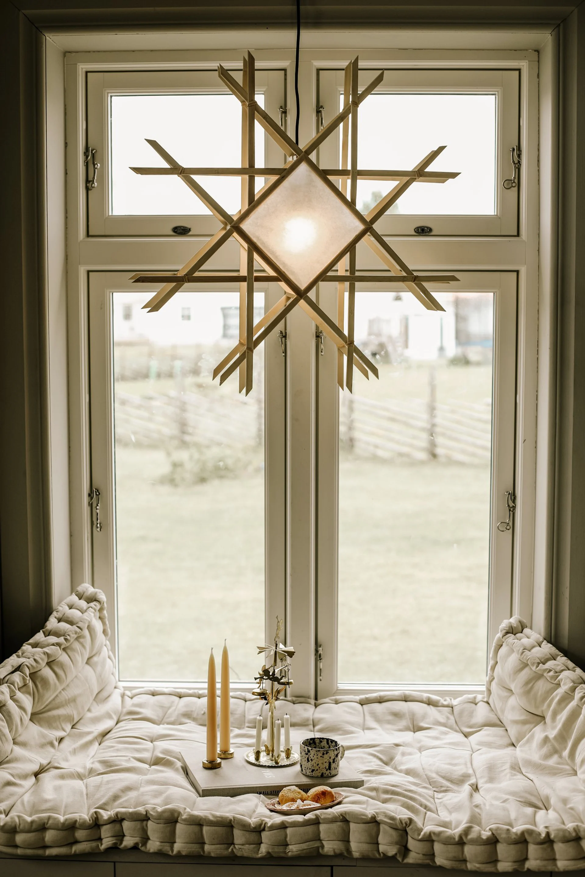 Julestjernen Lea fra Globen Lighting kombinerer skandinavisk enkelhet med naturmaterialer. Den er laget av bambus og papir, og utstråler en varm, organisk atmosfære som passer perfekt til både moderne og tradisjonell juledekor. De utskårne detaljene skaper et mykt lysspill som fyller hvert rom med en festlig og koselig stemning. Enten den plasseres i et vindu eller på et sidebord, er Lea et naturlig blikkfang med tidløs sjarm.