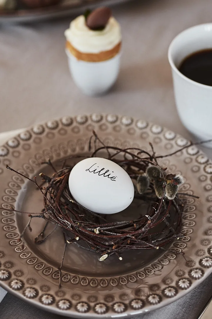 Tips! Plasser de fylte eggene i et fuglerede på tallerkenen for en elegant DIY påskepynt til påskemiddagen!