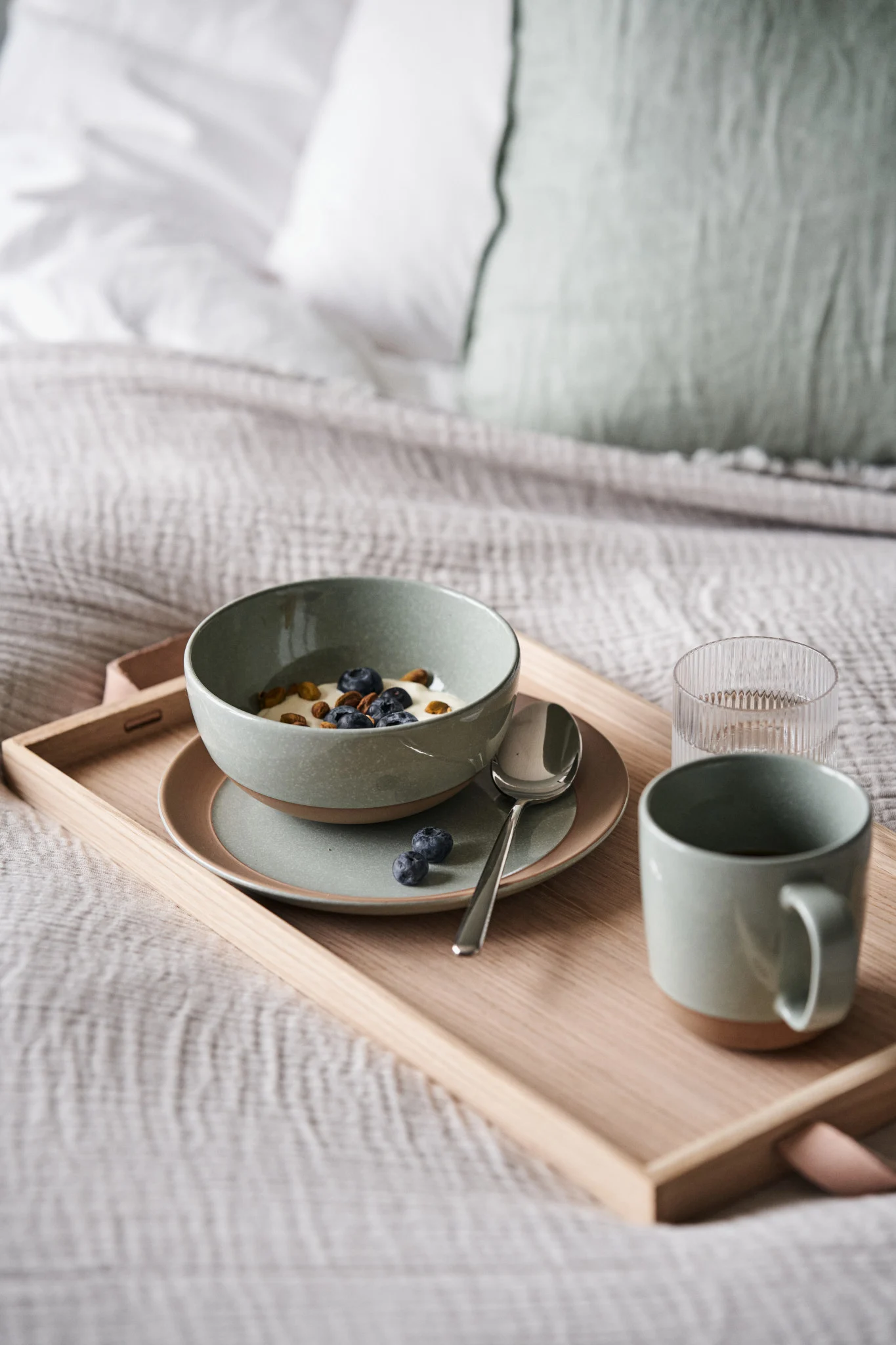 Skap en minneverdig morgen med et lekkert frokostbrett fylt med favorittene deres – ferskt bakverk, frukt, juice og kanskje en liten overraskelse som blomster eller en personlig gave. For en ekstra romantisk touch, velg et vakkert serviseog stilige glasssom gir en følelse av luksus.