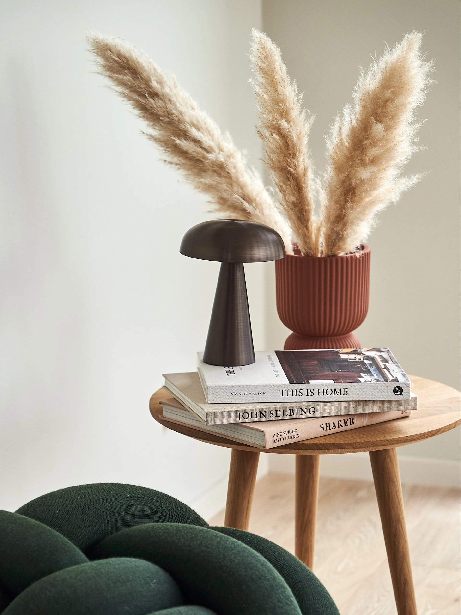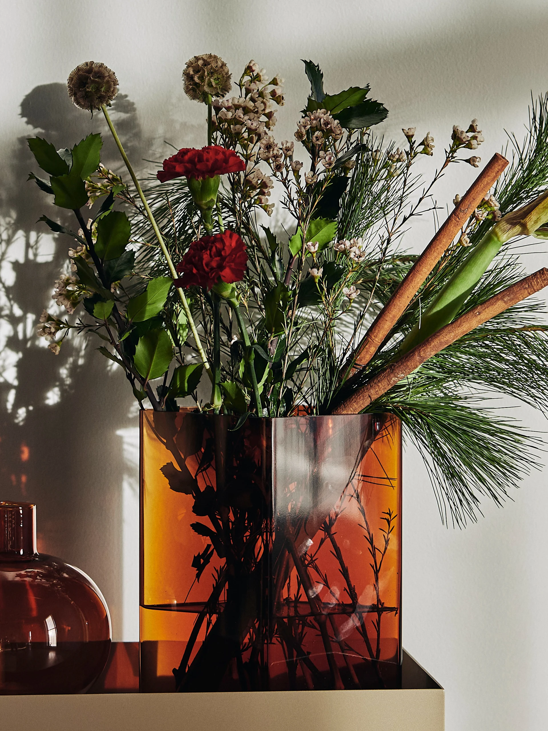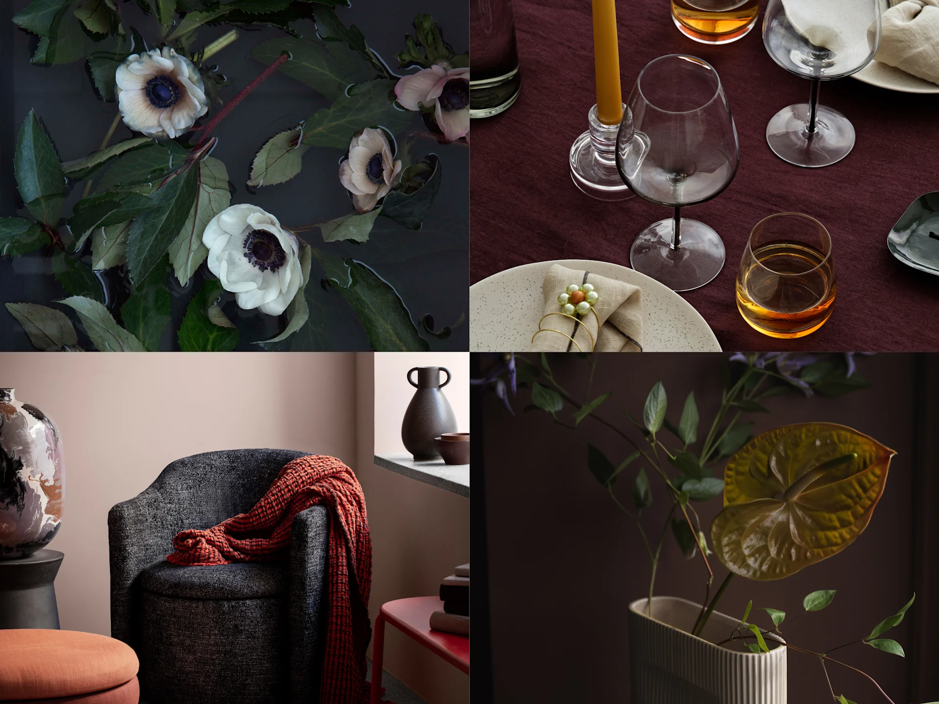 I Bloom ser vi etter tunge og luksuriøse materialer som fløyel, sateng og ull og kombinerer dem med edle metaller, glass og keramikk. Her kombinerer du det du vil som du vil. Fargene er dype og mørke. La deg inspirere av brente toner av terrakotta, oransje og rødt mens du velger aksenter av plommelilla og dominerende brune toner.