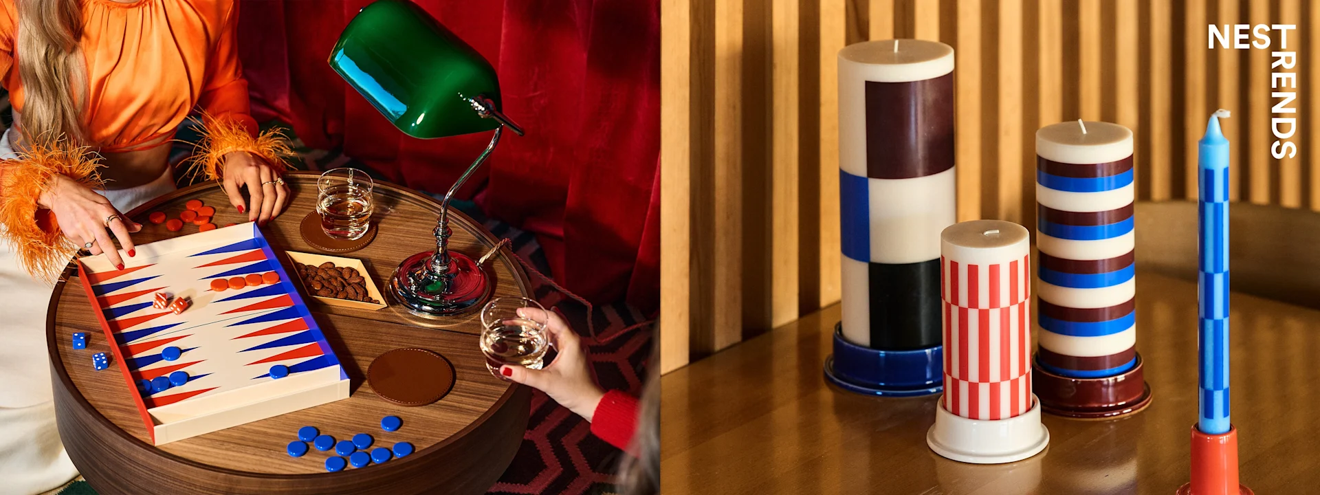 I denne trenden skal du arbeide mye med kontraster og fremfor alt arbeide inn rødt og blått i innredningen din. En leppestiftrød nyanse mot koboltblått eller t.o.m. kleinblått skaper drama i innredningen. Kompletter gjerne med sandfarger og beige for å få et harmonisk underlag med spenstige innslag.