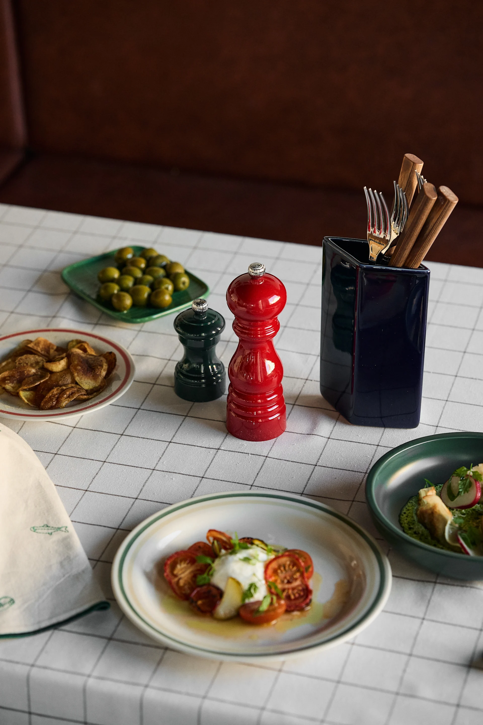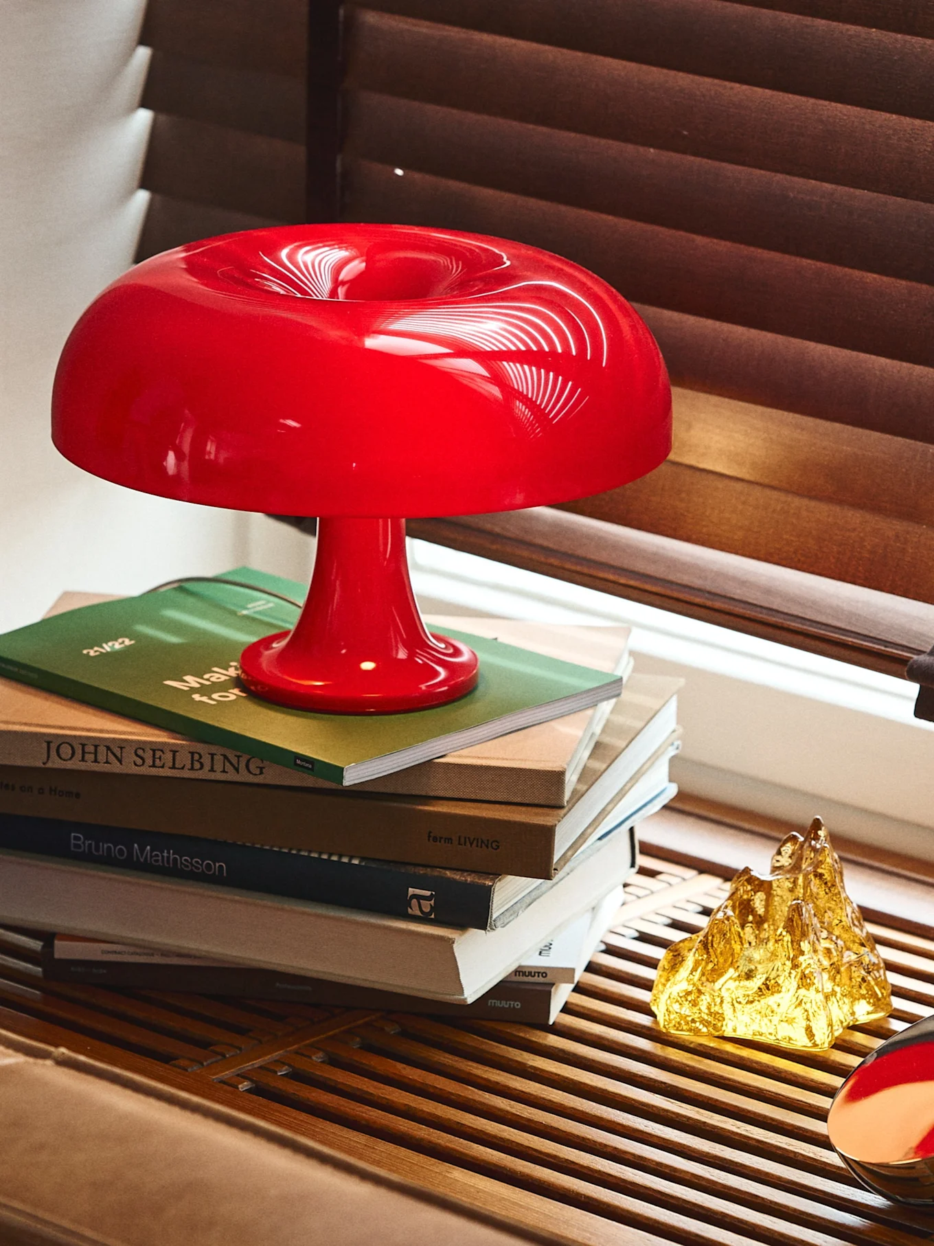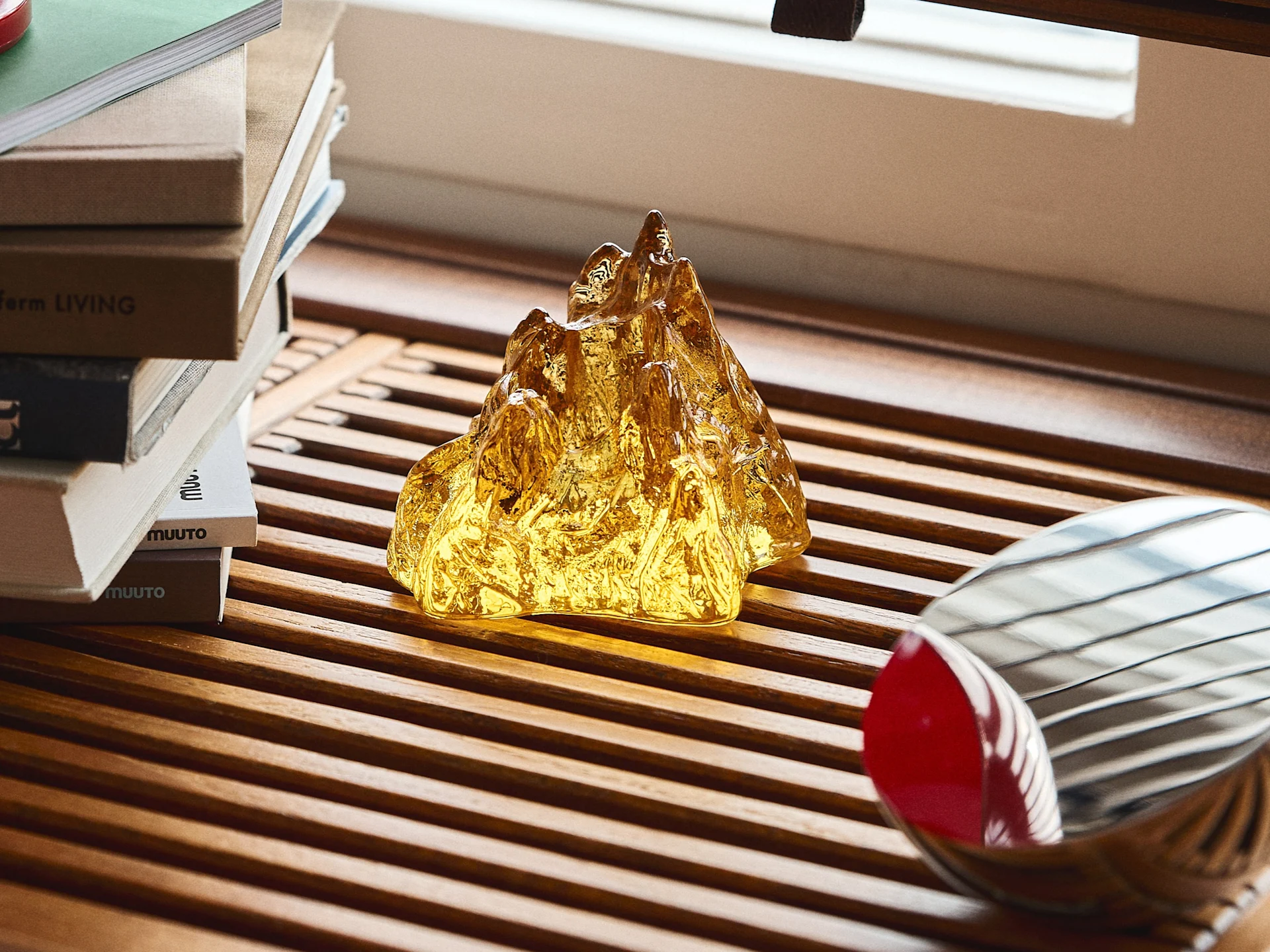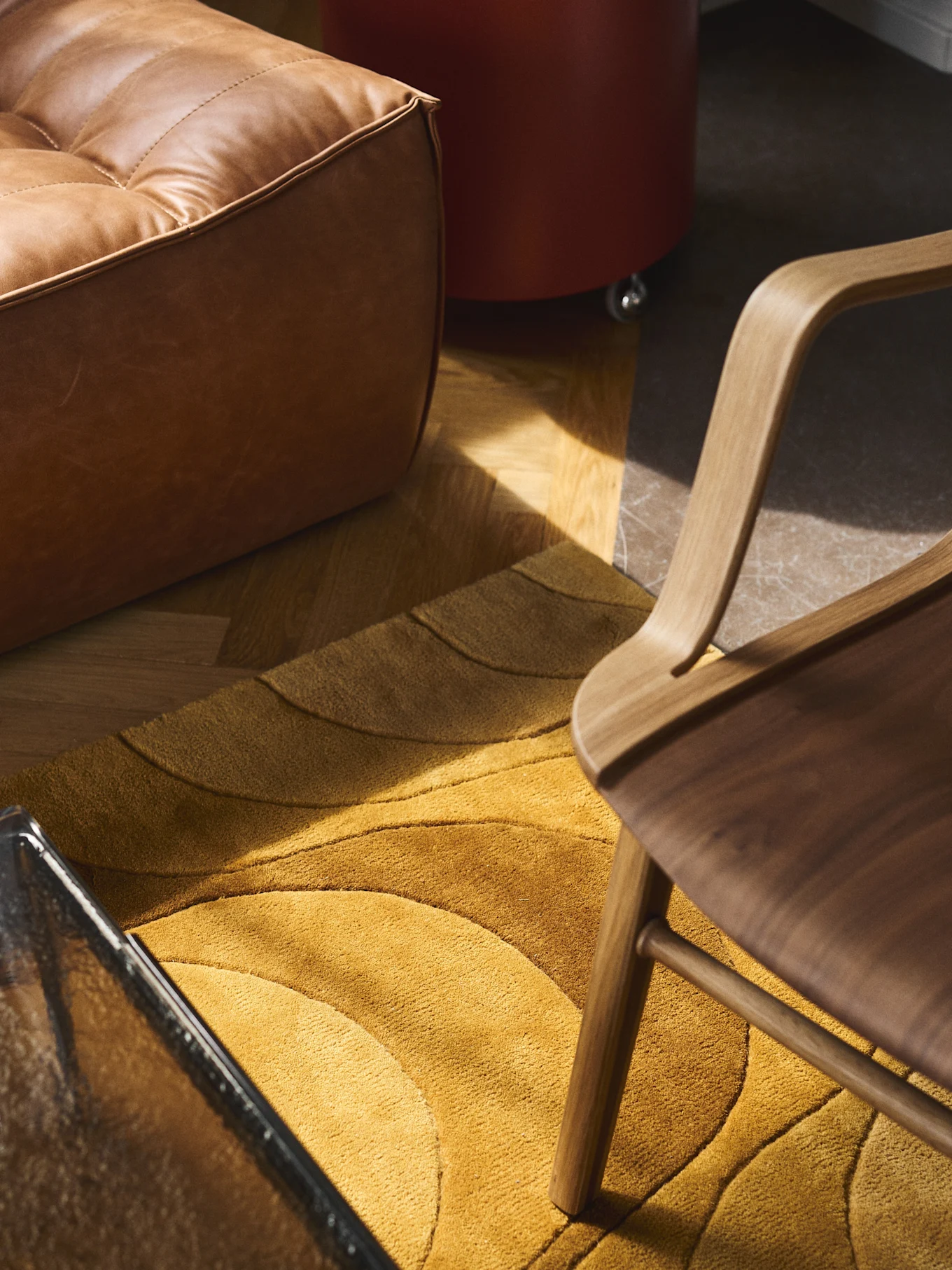 I Eclectic Curation ser vi mye ubehandlet tre, naturmaterialer som ull og glass, kombinert med rustfritt stål, kromfinish, polykarbonat og resirkulerte materialer.