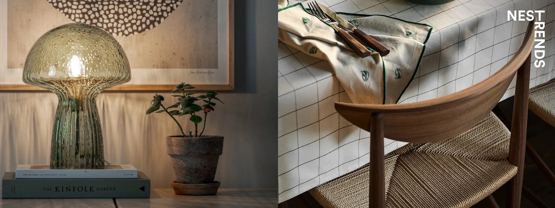 I Grounding Maximalism har naturen fått en sentral plass. Fra soppinspirert pynt til buede møbler som bølger seg rundt i rommet - denne trenden handler om å bringe naturen inn i rommet. Dette er en svært kuratert verden der nipsene føles hjemmelagde, og vi omgir oss med hjemmedyrkede urter og krydder. Grounding Maximalism er fantasifull, håndverksmessig og personlig.