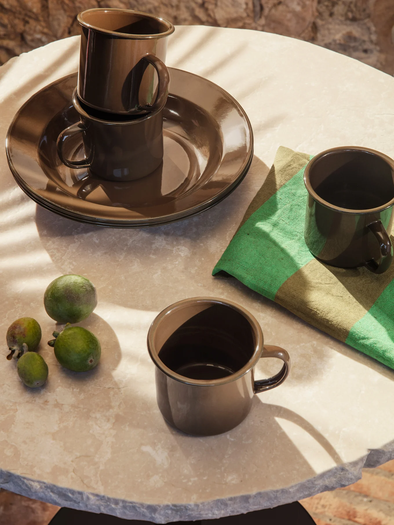 La deg inspirere av beroligende grønntoner, jordfarger og materialer som stein, kork, rotting og glass – naturens materialer.
