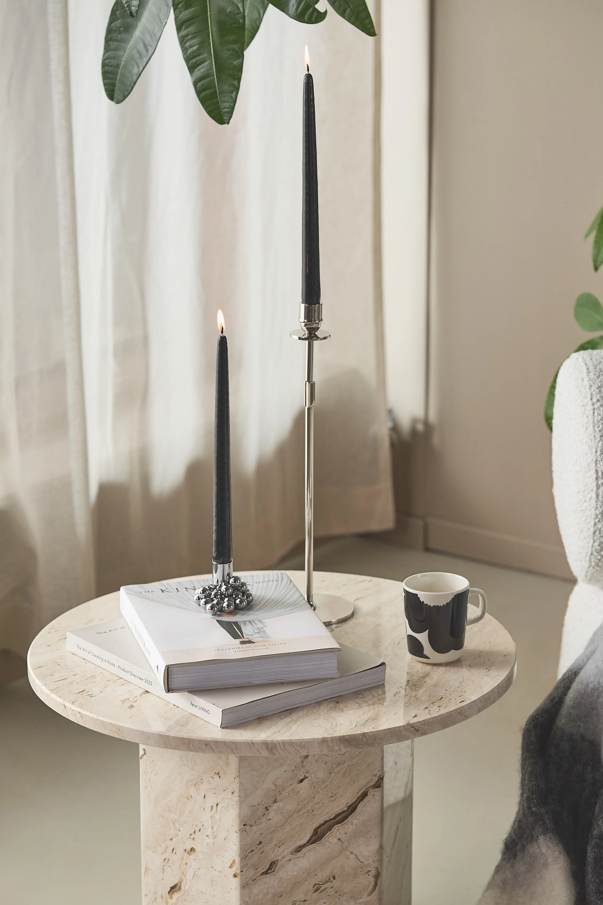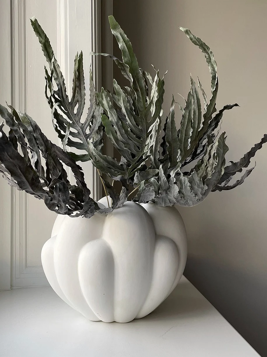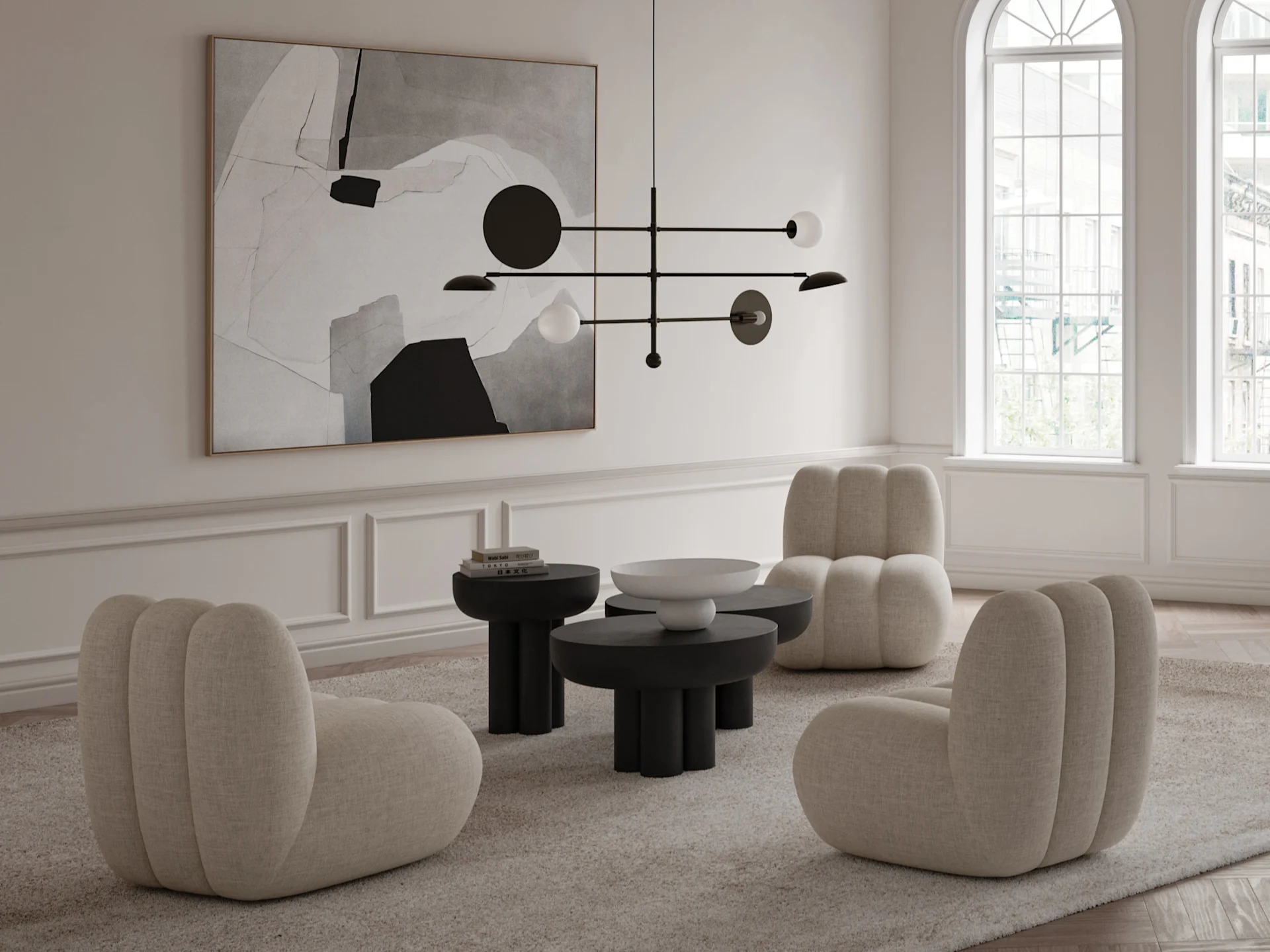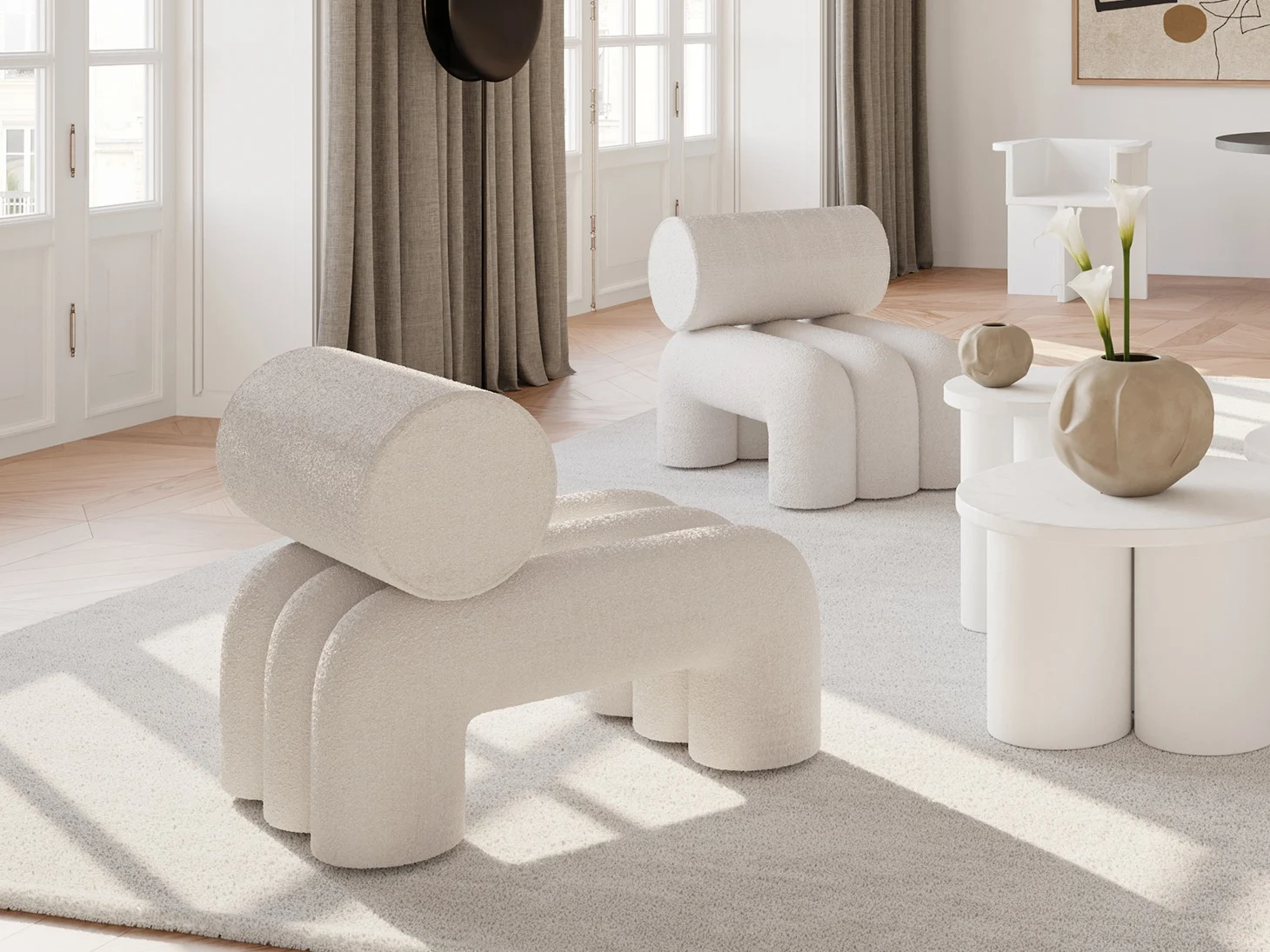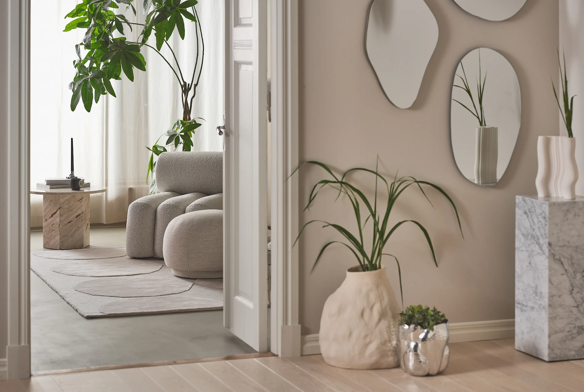 Hvis Soft Power er trenden din, bør du satse på interiørdetaljer med myke, avrundede og organiske former som møter rette linjer. Hold materialpaletten enkel med hovedfokus på naturlige teksturer. Glatte overflater som terrazzo, marmor og mørkbeiset tre får selskap av skinnende krom, keramiske detaljer og myk bouclé.