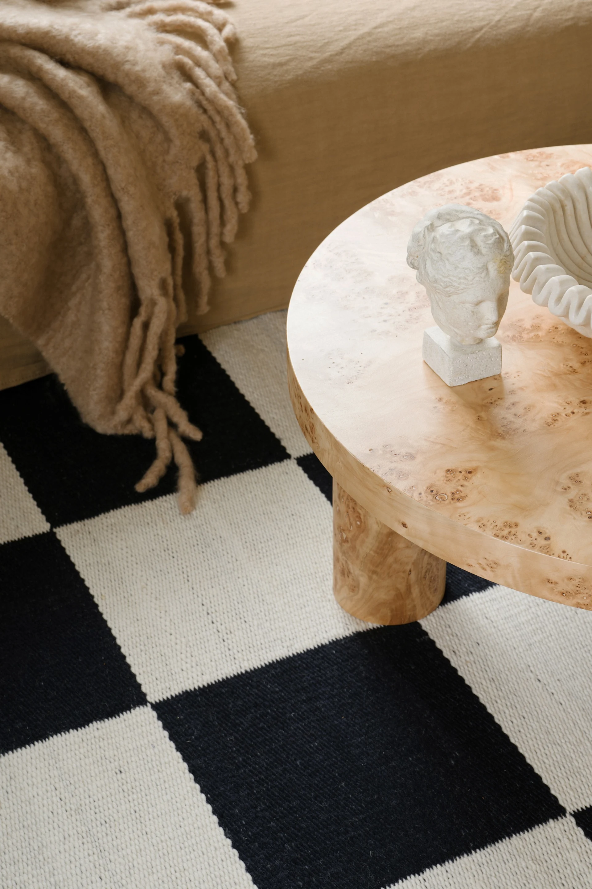 Drømmende detaljer med overdrevne kurver, sterkt reflekterende krom og lekne sjakkbrettmønstre gir de nøytrale fargene et løft og bringer trenden helt inn i nåtiden. Nøytrale toner av beige, offwhite, taupe og brunt danner grunnlaget for kontrasterende svarte og hvite sjakkbrettmønstre og beroligende innslag av fersken og til og med koboltblått.