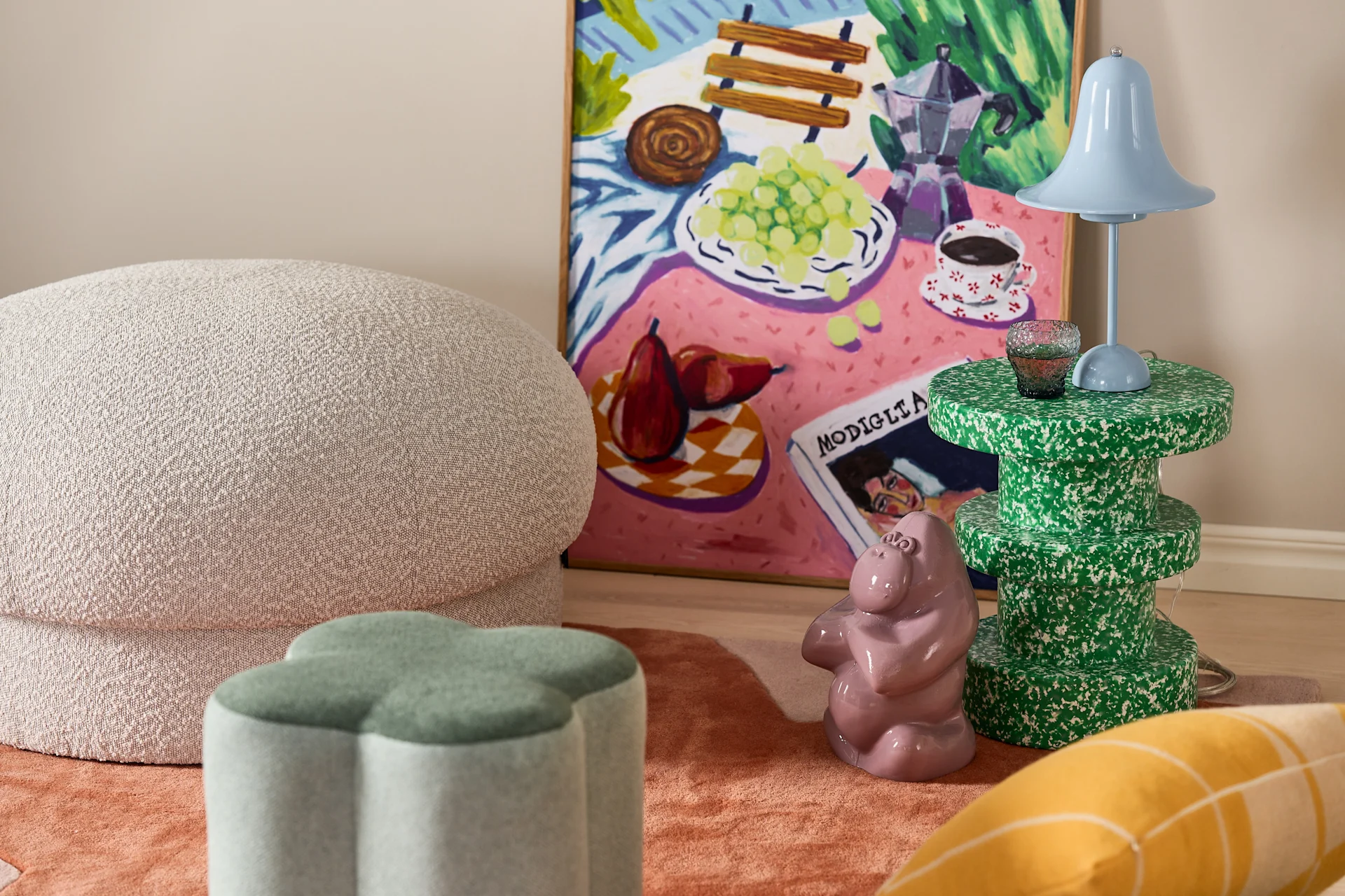 Fargepaletten i Unique Vibes er lys og dristig - se etter oransje, fuksia, en Nintendo-inspirert grønnfarge, knallgult, lavendel og rødt og litt pudderrosa og blått som går over i turkis. For å beholde det skandinaviske uttrykket holder vi basen lys og frisk, men innlemmer fargerike elementer som utfordrer interiøret.