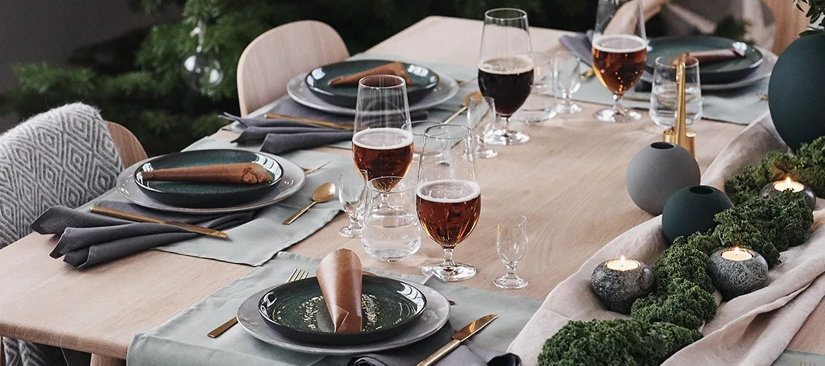 Elsker du grønt? Denne fine fargen er en julefavoritt for mange, og i denne borddekkingen skaper de grønne tonene en eventyrlig og harmonisk stemning på julebordet, samtidig som det kjennes både moderne og nytenkende. Her er delene du bytter ut fra den nøytrale, hvite borddekkingen for å skape en grønn og moderne borddekking til jul: