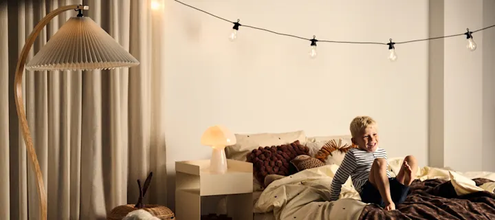 På soverommet kan du innrede med stemnings- og funksjonell belysning i form av bordlamper, vinduslamper og kanskje noen lyslenker. Liker du å lese i sengen bør du ha en vegglampe eller bordlampe som gir deg et retningsbestemt lys og gjerne med en justerbar armatur slik at du kan justere lyset avhengig av om du sitter eller ligger.