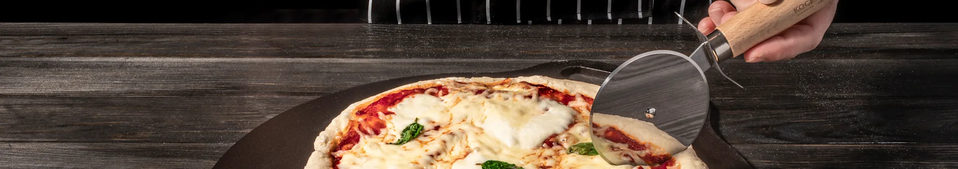 Uansett om pizza står på menyen hver lørdag eller om det bare er en gang iblant, er pizzahjul et praktisk og funksjonelt redskap som gjør det lettere å dele opp pizzaen, men som også kan brukes til å skjære opp hjemmelaget pasta, tortillas og en rekke andre matretter. I vårt store sortiment kjøkkenutstyr, har vi også et bredt utvalg pizzaskjærere og pizzahjul av høy kvalitet.