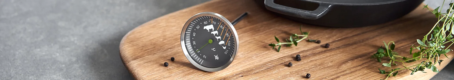 Et steketermometer er et praktisk kjøkkenredskap som gjør det lett å kontrollere at stek eller andre kjøttstykker har rett temperatur som gjør at de er ferdigstekt og trygt å spise, uten at du behøver å skjære gjennom kjøttet. Her hos oss kan du finne steketermometere fra kjente og populære merkevarer som De Buyer, Satake og WMF.