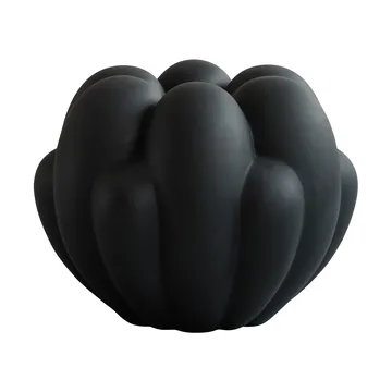Bloom vase mini fra danske 101 Copenhagen er laget av håndglasert keramikk med en form som er inspirert av blommens ulike stadier fra åpen til lukket. Siden vasen, som er designet av Kristian Sofus Hansen & Tommy Hyldahl, ikke er helt vanntett følger det med en pose for å plassere blomster i.