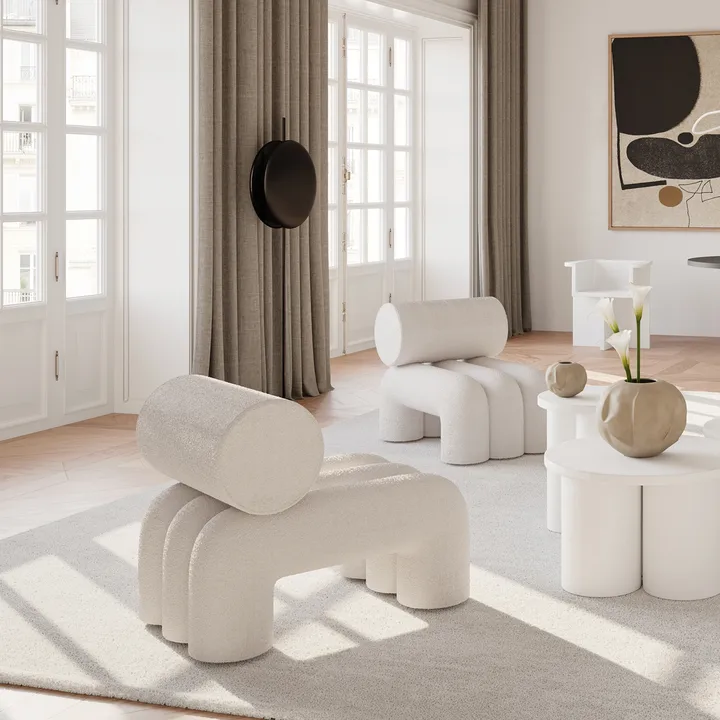 Foku Chair loungestol fra 101 Copenhagen er en moderne loungefåtølj hvis geometriske former er inspirert av tradisjonelle japanske hageredskaper. Foku Chair er en polstret loungefåtølj med en skulpturel følelse som blir like mye kunst som møbel i hjemmet ditt.