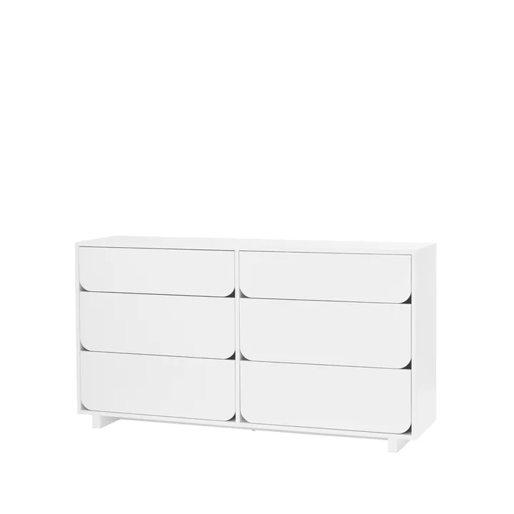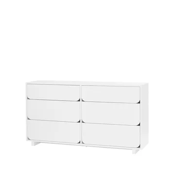Vidja Dobbel kommode fra 1898, en skapelse av Eva Lilja Löwenhielm, utstråler mykhet og eleganse. Kommoden er en del av Vidja-kolleksjonen og har skuffer med myklukkende skinner for stille og smidig bruk. De lakkede MDF-skuffefrontene kompletteres av en innside i mattlakkert bjørkplywood. Den solide stammen med gerade hjørner tilbyr stabilitet. Kommoden leveres med veggfeste og filtføtter for enkel installasjon og skånsom plassering på ulike underlag.