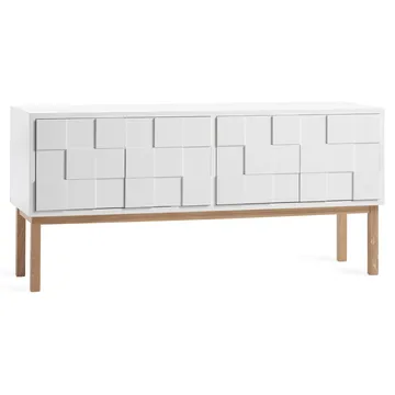 Collect 2010 mediabenk med bein fra A2 er et praktisk og gjennomtenkt møbel designet av Sara Larsson. Mediabenken har de karakteristiske rutete dørene som gir et grafisk inntrykk, smarte trykklåser og en flyttbar hylle i hvert rom for fleksibel oppbevaring av media og tilbehør. Diskrete kabelgjennomføringer holder orden på ledningene og gjør installasjonen enkel. Plasser den i stuen som mediesenter eller som oppbevaringsmøbel ved TV-sofaen — funksjonell, lett å flytte og tilpasser seg etter ditt behov.
