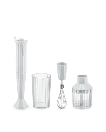 Plissé stavmikser-sett fra Alessi tilbyr en sofistikert og elegant stil, inspirert av haute couture-design. Denne stavmikseren er praktisk å bruke og perfekt for å effektivisere matlagingsforberedelsene. Utforsk enkelhet og funksjonalitet på ditt kjøkken.
