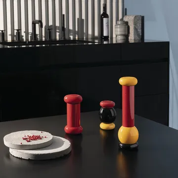 Twergi salt- og pepperkvern 23 cm fra Alessi er en elegant og funksjonell kvern designet av Ettore Sottsass for Twergi-kolleksjonen. Med en varm trefølelse og klar, grafisk silhuett blir den både et praktisk redskap og en dekorativ detalj på kjøkkenbenken eller spisebordet. Justerbar malingsgrad gjør den fleksibel for alt fra fint bordsalt til grovere pepper, og den solide konstruksjonen gir pålitelig ytelse ved daglig bruk. En perfekt gave til den som setter pris på design som fungerer i hverdagen.