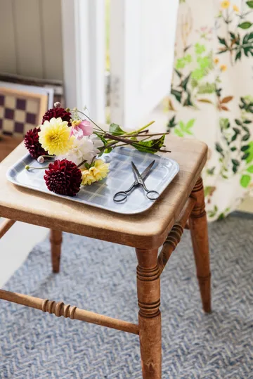 Kristina brett fra svenske Almedahls er et hvitt brett med blårutete mønster laget av bjørkefinér. Et perfekt kakebrett eller serveringsbrett!