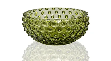 Hobnail Tapas bolle 17 cm fra Anna Von Lipa er en håndlaget glasskål med rund, lav form og dekorativ hobnail-overflate. Skålen er ideell for å servere tapas, frukt eller småretter på en innbydende måte. En fargerik glasskål som gjør hvert måltid litt morsommere.