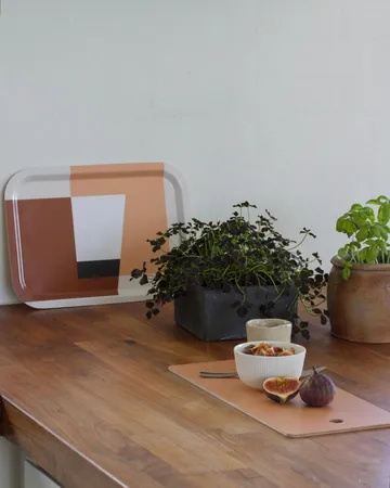 A tribute to colour - brikke fra Applicata er laget av FSC-sertifisert MDF. Den håndlagde skjærebrettet er både funksjonelt og kunstnerisk, og har et mønster designet av atferdsviteren Rikke Skytte. Det hyller naturens fargepalett og er like iøynefallende enten det brukes som serveringsbrett eller som et dekorativt element på kjøkkenet.