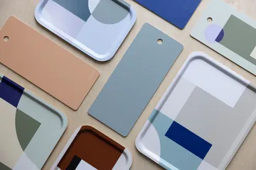 A tribute to colour - brikke fra Applicata er laget av FSC-sertifisert MDF. Den håndlagde skjærebrettet er både funksjonelt og kunstnerisk, og har et mønster designet av atferdsviteren Rikke Skytte. Det hyller naturens fargepalett og er like iøynefallende enten det brukes som serveringsbrett eller som et dekorativt element på kjøkkenet.