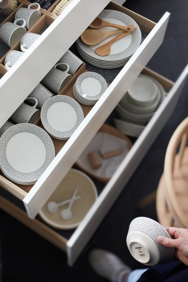 Mainio Sarastus tallerken Ø 25 cm fra finske Arabia er en spisetallerken med en bord i form av organiske striper og små prikker. Delene i Mainio Sarastus-serien er formgitt slik at de skal kunne stables og kombineres med hverandre. For eksempel kan du bruke tallerkenene som lokk til skålene når du oppbevarer mat i kjøleskapet og fryseren. Alle deler kan også brukes i ovn og mikrobølgeovn, og ved servering til hverdag og fest.