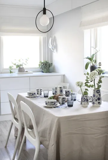 Pastoraali skål Ø 13 cm fra Arabia har et organisk mønster med en herlig blanding av fugler, løv. blomster og detaljerete menneskelige karakterer, designet av Esteri Tomula. Skålen av vitroporselen har en rund form med høye kanter og er derfor et utmerket valg for en god smoothie bowl eller en varm suppe. Suppler gjerne Pastoraali-skålen med andre deler i serien for å lage et kreativt og interessant servise.