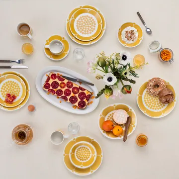 Sunnuntai kopp fra Arabia ble designet av Birger Kaipianen i 1971. Den solgule koppen med det herlige mønsteret sprer en positiv følelse og blir en fantastisk fargeklatt på frokostbordet eller kaffebrettet. Designet føles like aktuelt og moderne i dag som det gjorde den gangen. Kombiner gjerne med fatet i samme serie.