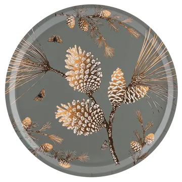 Pine Cone brett Ø 38 cm er designet av Sam Pickard for Åry Home og prydes av et naturinspirert motiv med kongler, bar og kvister. Naturtemaet er gjennomgående i dette vakre, håndlagde serveringsbrettet, som også er laget i Sverige av FSC-sertifisert bjørkefinér. Herlig til sommerens drinker og til ettermiddagskaffen ute i hagen.