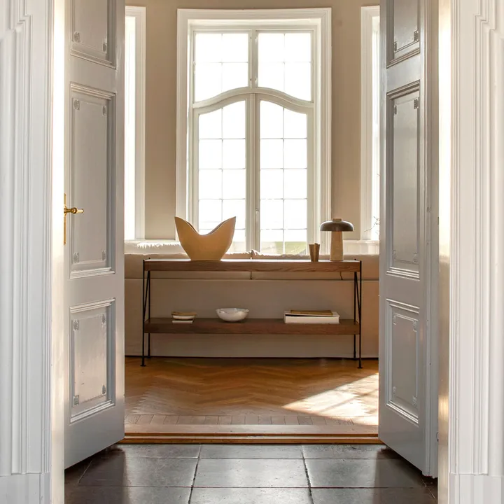 Zet hyllesystem fra Audo Copenhagen, designet av kaschkasch, er et innovativt hyllesystem. Systemet består av trekomponenter og en metallramme, noe som muliggjør en fleksibel og tilpassbar design. Bygg forskjellige formasjoner og skap akkurat det uttrykket du ønsker i hjemmet ditt.