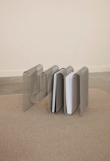 Curva magasinholder fra AYTM er et elegant og smart oppbevaringsvalg som organiserer favorittmagasinene dine med finesse. Formgitt for å kombinere funksjon og estetikk, gir det stuen eller lesekroken din en lett og luftig følelse. Den åpne utformingen gjør det enkelt å se og ta frem det du vil lese, samtidig som den gjennomtenkte designen blir en vakker interiørdetalj når den ikke er i bruk. Perfekt for deg som vil ha orden uten å gå på kompromiss med formen.