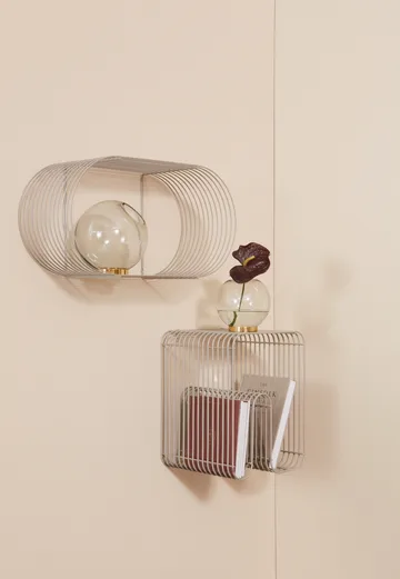 Curva vegghylle fra danske AYTM er en iøynefallende oval hylle laget av jernstenger som er plassert ved siden av hverandre. Den elegante hyllen kan brukes til alt fra magasiner og bøker til fine interiørdetaljer. Bruk vegghyllen Curve som nattbord ved siden av sengen, som hattehylle i entreen eller som sidebord ved lesestolen i stuen.