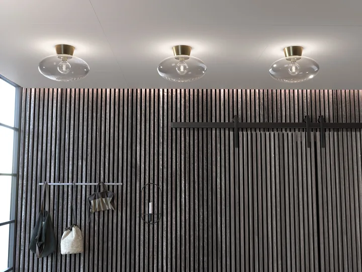Bullo takplafond XL klart glass Ø 38 cm fra svenske Belid er en moderne og elegant taklampe med en synlig lyspære, som passer perfekt til moderne og industrielle interiørstiler. Plasser den store takplafonden i gangen, stuen eller på hjemmekontoret.