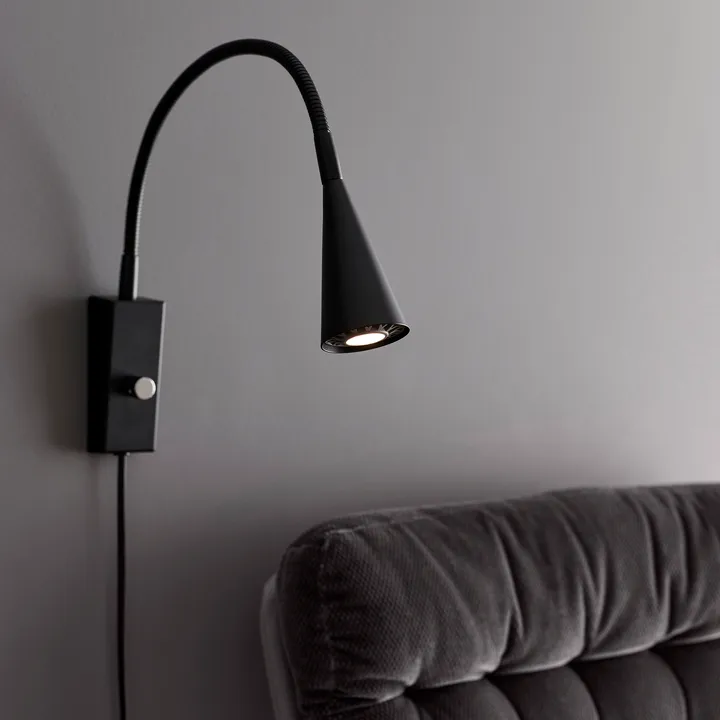 Ledro vegglampe fra svenske Belid er en elegant vegglampe med dimmer som gjør at du kan regulere og tilpasse lysstyrken etter behov. Vegglampens minimalistiske og stilrene design gjør at den passer inn i de fleste rom og interiørstiler, og den kan dermed brukes som både sengelampe og skrivebordslampe.