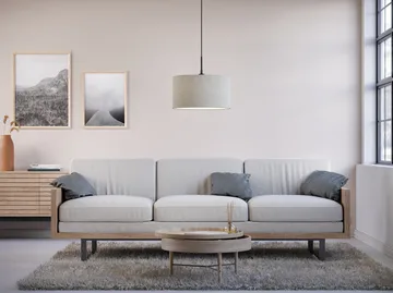 Soft pendel Ø 40 cm fra svenske Belid er en rund taklampe av ull og metall. Lampen, som er laget av et brannsikkert og lyddempende materiale, gir en varm og moderne følelse uansett om du henger den over kjøkkenbordet eller lar den bli en del av stuen.
