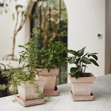 Gaia raw krukke fra Bergs Potter er en stilren terrakottakrukke inspirert av den klassiske Melon Pot. Laget av 100% terrakotta og plassert på diskrete hjørneføtter, balanserer denne terrakottakrukken tradisjon og moderne design. Takket være det naturlige materialet får hver krukke sin egen unike karakter og blir en tidløs detalj i hjemmet.