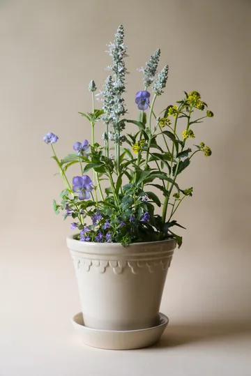 Köpenhamn krukke glasert Ø25 cm fra Bergs Potter er en vakker håndglasert leirkrukke av italiensk premiumleire. Krukken har en vakker relieffdekor som kjennetegner Köpenhamn-modellen, og den intense glasuren gjør krukken til en fin interiørdetalj både inne og ute. Den spesielle silikonbehandlingen gjør krukkefatet helt vanntett, noe som gjør krukken perfekt for både innendørs- og utendørsbruk.