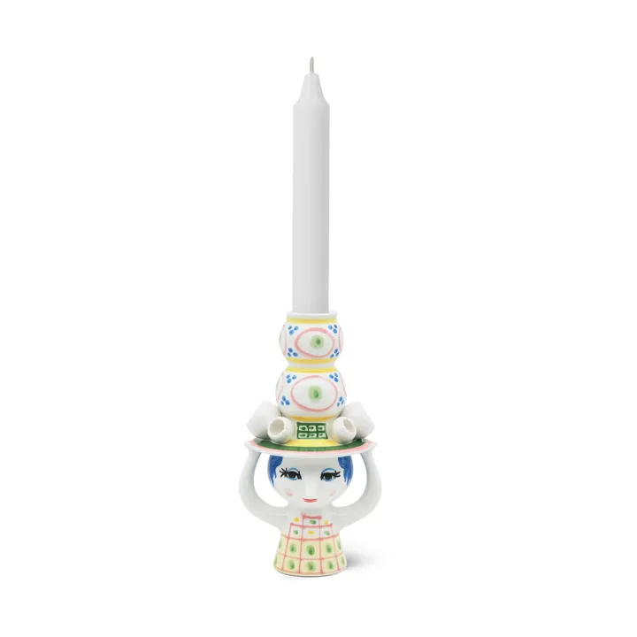 Lady with hat vase H16 cm fra Bjørn Wiinblad er laget i keramikk og inviterer til glede i hjemmet med sine fargerike, håndmalte detaljer. Inspirert av Wiinblads forkjærlighet for figurer med hatter, har denne keramikklysestaken et lekent og fantasifullt uttrykk. Bruk den med ulike lys eller som en dekorativ blomsterstativ.