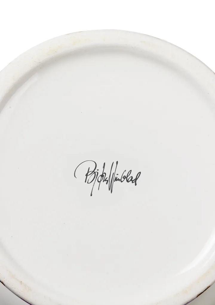 Olga vase 20 cm fra Bjørn Wiinblad er en stilfull keramikkvase med glasert overflate og livfulle dekorasjoner. Det karakteristiske ansiktet med mandelformede øyne gir vasen et unikt uttrykk. Med sin høyde på 20 cm er denne keramikk-kreasjonen perfekt for å fremheve blomster og skape et kunstnerisk innslag i hjemmet.