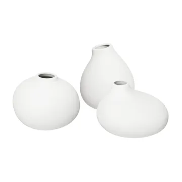 Nona vase 3-pakning fra tyske blomus består av tre vaser i ulike former. Vasene har alle en avrundet form med matt overflate, og er like fine sammen som hver for seg. Plasser dem i bokhyllen, på en skjenk eller på stuebordet.