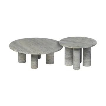Volos sidebord S Ø52 cm fra Blomus er laget av travertin, en porøs kalkstein med naturlige hull og fargevariasjoner. Det runde sidebordet som har en design av Sebastian Herkner er perfekt ved siden av lenestolen i stuen.
