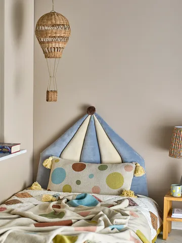 Clennie pute 30x60 cm fra Bloomingville er laget av resirkulert bomull og har et lekent prikkemønster i forskjellige farger og størrelser. Putetrekket består av 68% ull, 25% polyester og 7% viskose, noe som gir en tekstur som både er holdbar og behagelig. Fylt med 100% polyester er puten en koselig og dekorativ detalj til barnerommet.